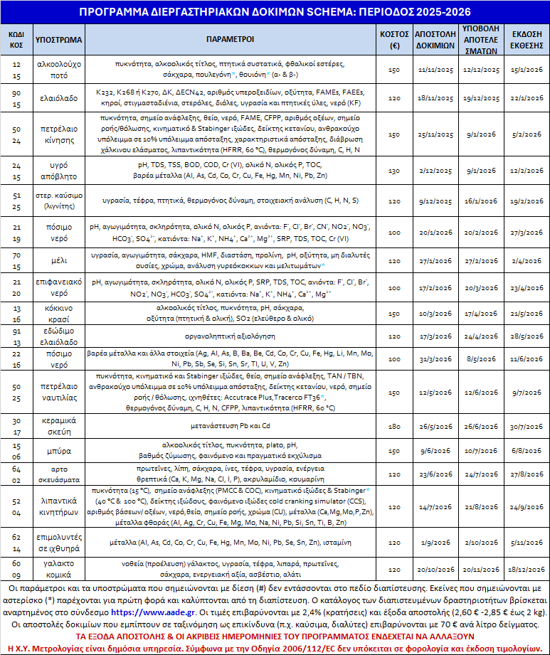 Στον παρακάτω πίνακα παρουσιάζεται το πρόγραμμα διανομής διεργαστηριακών σχημάτων για την περίοδο 2025-2026.